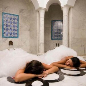 – Волшебный мир восточного хамама. Опытные мастера сделают вам расслабляющий массаж всего тела, включающий пенные и мыльные процедуры, пилинг кокосовой стружкой и маску «Клеопатра» на лицо. Кроме того, вас угостят ароматным чаем и дадут свободное время, чтобы вы могли отдохнуть в сауне, парной и джакузи.