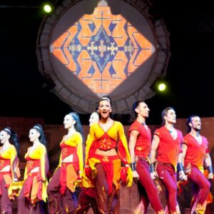 – История человечества в танце – Кроме танцев вас ждет живой оркестр с традиционными музыкальными инструментами, огненное шоу и парад поражающих воображение ярких костюмов. Но самое главное – это, конечно, мастерство танцоров и их неподдельные эмоции.