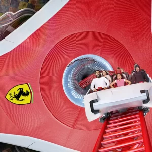 Тематический Парк Ferrari World С трансфером и обедом , В здании с фантастическим дизайном вас ждет самый знаменитый тематический парк на Ближнем Востоке. Здесь можно разогнаться до 240 км/час за 5 секунд на горке Формула Росса, почувствовать себя гонщиком на многочисленных симуляторах, понаблюдать за сборкой автомобилей и увидеть эксклюзивные современные и ретро-модели Ferrari.